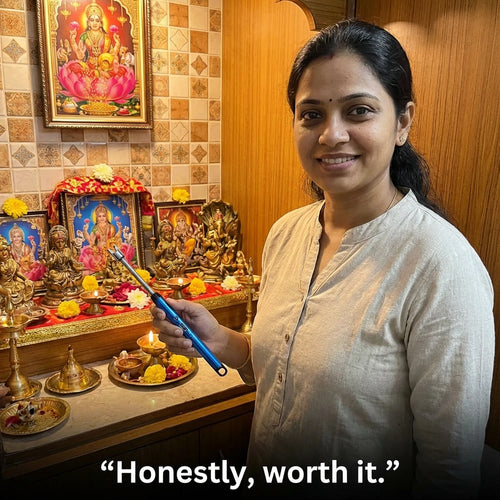 Nitisha - Handy for kitchen and puja use.. flameless design makes it safer, and the rechargeable battery is a big plus. Perfect for lighting candles, incense sticks, and gas stoves. Would recommend for its convenience and safety features.