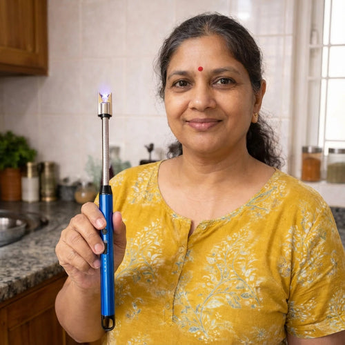 Sathish - This electric rechargeable lighter is very convenient and easy to use, especially for lighting gas stoves, candles, and puja diyas. The flameless electric arc lights instantly with one button, and it works reliably even in a fan or light breeze.